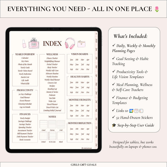 To use our digital planners, you’ll need a PDF annotation app such as GoodNotes, Notability, Noteshelf, or CollaNote. After purchase, simply import the planner into the app, and you can start planning immediately. Our planners come fully hyperlinked for seamless navigation across pages.