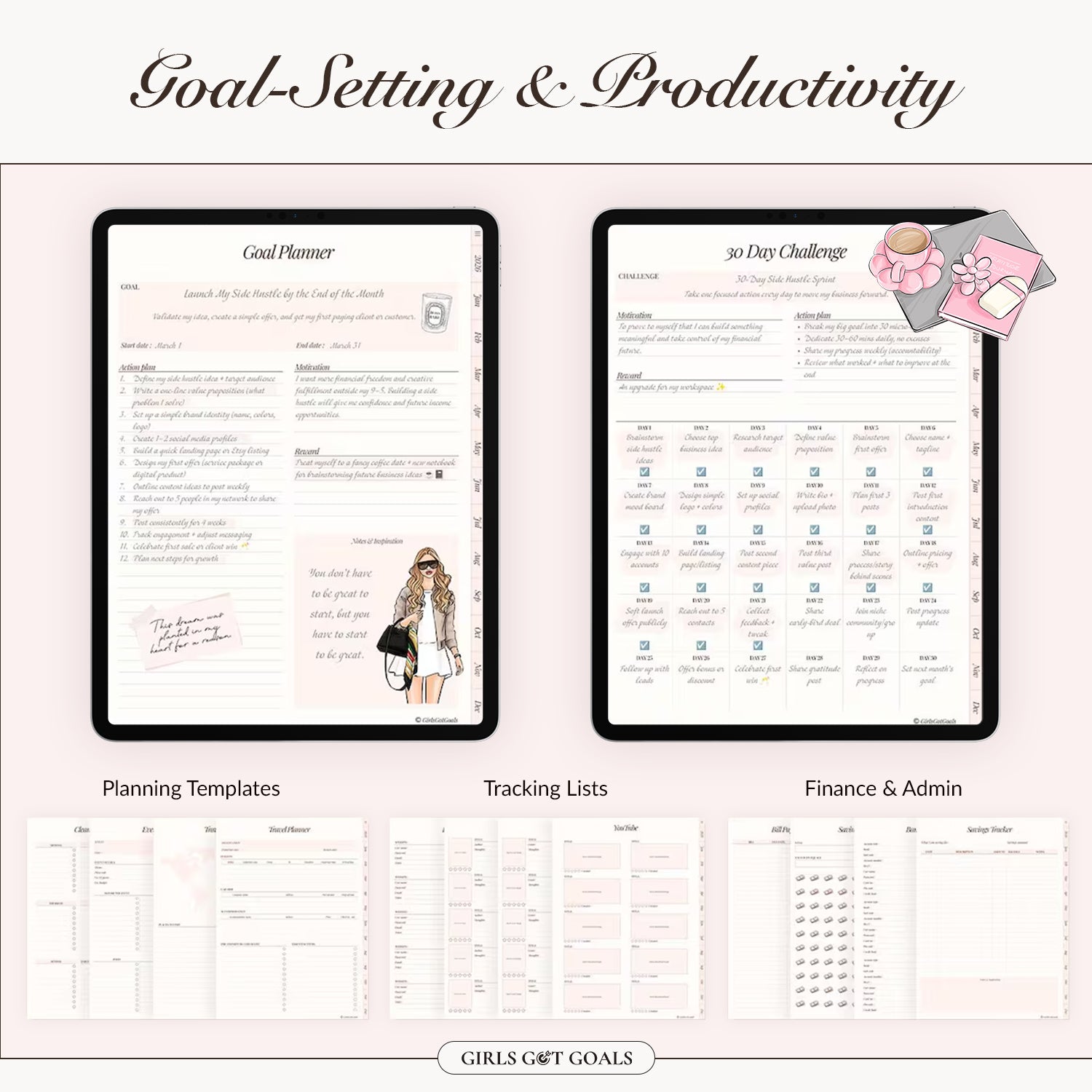 All Girls Got Goals planners are designed to work seamlessly with most popular note-taking apps including GoodNotes, Notability, CollaNote, Samsung Notes, Xodo, Noteshelf and others.