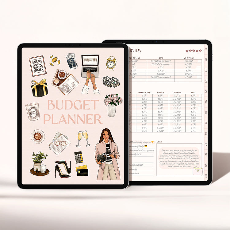 Take control of your money with the Budget Planner — a simple, beautiful system for organizing your finances without the overwhelm. From monthly and weekly budgets to savings goals, expense trackers, and debt payoff plans, this planner helps you stay on top of every dollar. With dedicated pages for paycheck budgeting and annual overviews, you’ll see exactly where your money is going and create a plan to reach your financial goals faster.