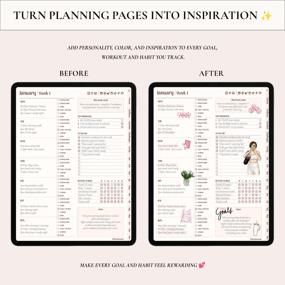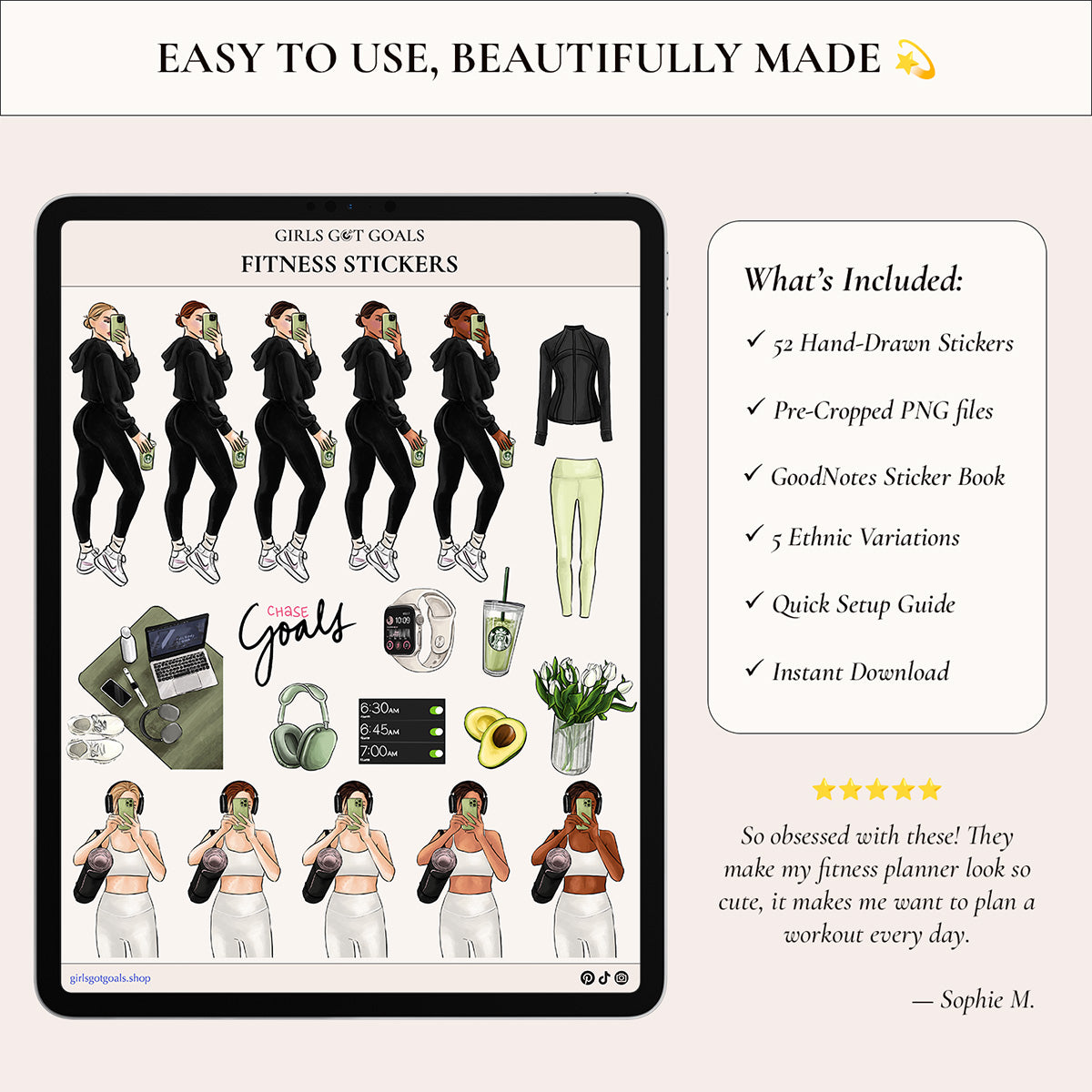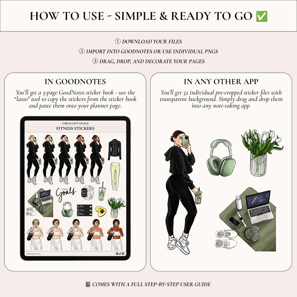 Perfect for decorating your Girls Got Goals Fitness Planner or any digital journal, these stickers add that final, polished touch that turns every page into motivation.