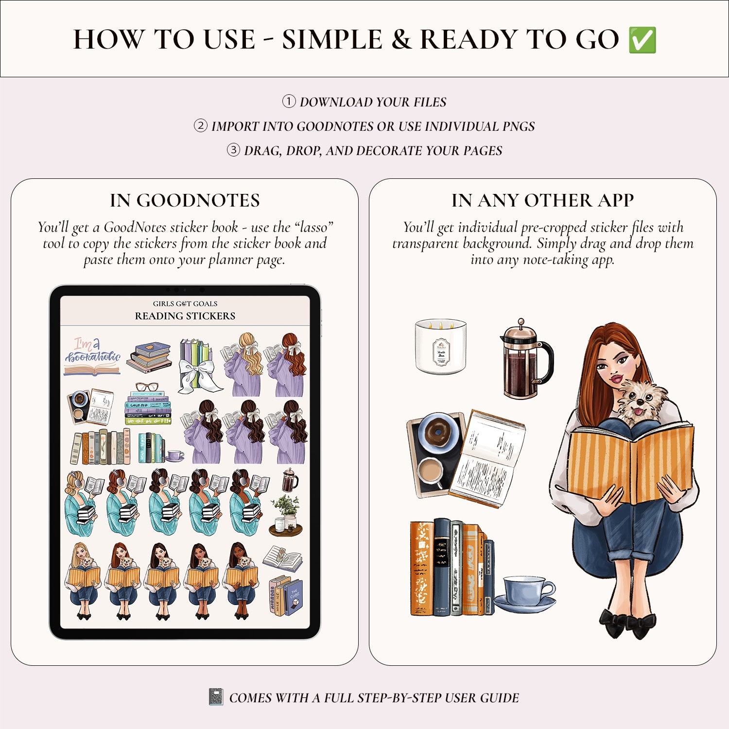 Perfect for decorating your Girls Got Goals Reading Journal or any digital notebook, these stickers add that final, polished touch that turns your reading pages into a space you’ll love returning to.